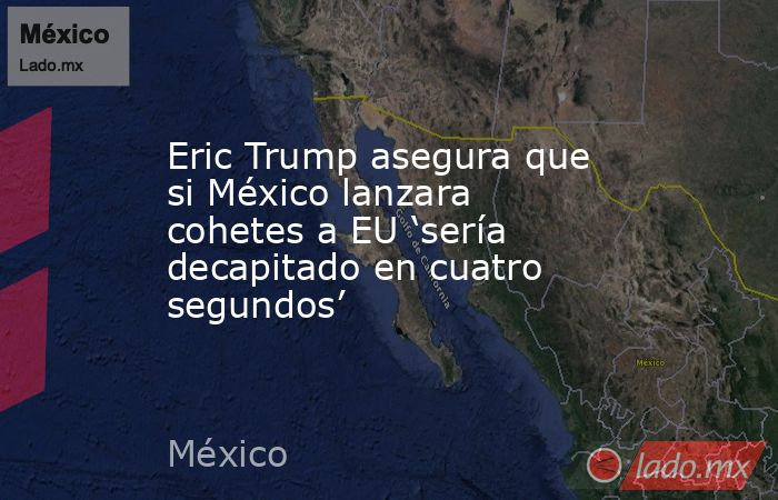 En una entrevista transmitida por Fox News, Eric Trump, hijo del expresidente Donald Trump, aseguró que si México llegara a lanzar cohetes hacia Estados Unidos, la respuesta militar estadounidense sería inmediata y contundente. “Si México —digamos, en un escenario hipotético— lanzara cohetes contra Estados Unidos, creo que serían decapitados en unos cuatro segundos”, afirmó.