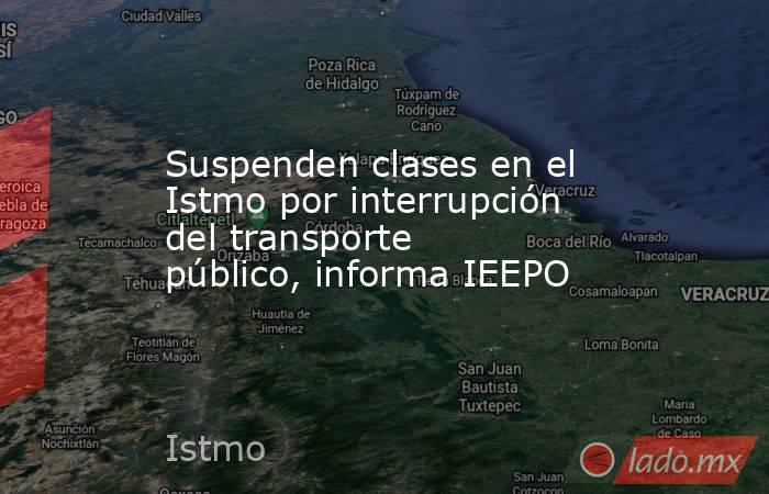 - Ante la suspensión provisional del servicio de transporte público en diversas rutas del Istmo de Tehuantepec, el Instituto Estatal de Educación Pública de Oaxaca (IEEPO) tomó la determinación de suspender actividades escolares este lunes 17 de junio en la región, informó su director general, Emilio Montero Pérez,.