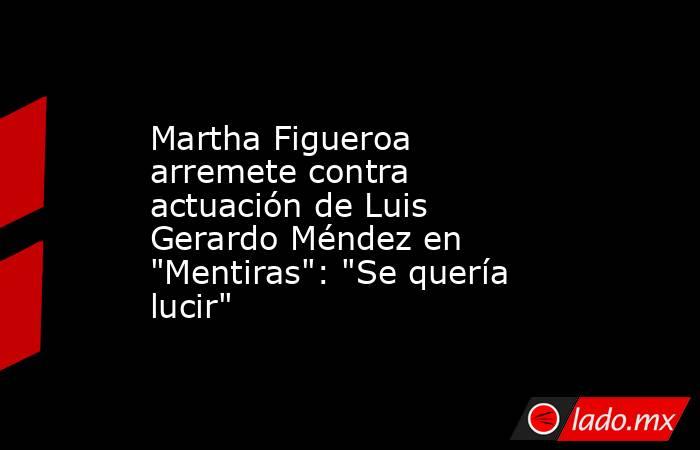 ¿Qué dijo Martha Figueroa contra la actuación de Luis Gerardo Méndez?En su programa de YouTube donde analiza sucesos del panorama del espectáculo, Martha Figueroa tocó el tema de la serie Mentiras: "En teatro estaba perfecta, era muy padre.