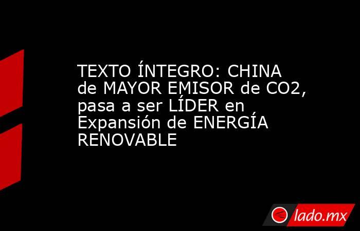 TEXTO ÍNTEGRO: CHINA de MAYOR EMISOR de CO2, pasa a ser LÍDER en Expansión de ENERGÍA RENOVABLE Punto Por Punto