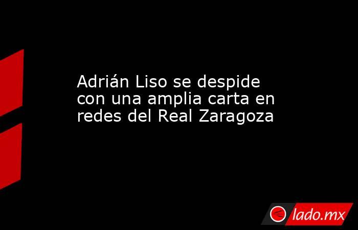 Zaragoza, 20 jun (EFE).- Adrián Liso, canterano del Real Zaragoza, se ha despedido de la afición del equipo zaragocista a través de una amplia carta en su perfil de la red social Instagram, a pesar de que la entidad todavía no lo ha hecho oficialmente.