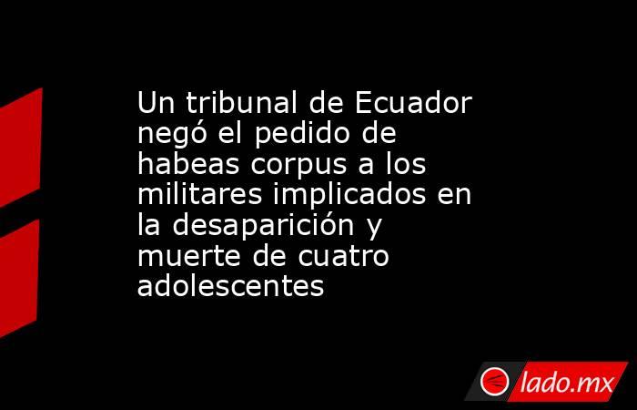 Un tribunal ecuatoriano rechazó el viernes un pedido de habeas corpus presentado por la defensa de 11 militares procesados por la desaparición y muerte de cuatro adolescentes en Guayaquil, según confirmaron fuentes judiciales y abogados de las víctimas.