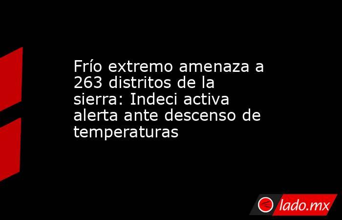 El Instituto Nacional de Defensa Civil (INDECI) informó que 263 distritos de la sierra peruana se encuentran en riesgo de verse afectados por el descenso significativo de la temperatura durante la noche, fenómeno previsto entre el viernes 21 y el domingo 23 de junio, según el aviso meteorológico N.º 208 del SENAMHI.