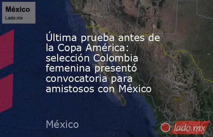 La selección Colombia femenina de mayores definió la lista de 23 futbolistas que enfrentarán a México en dos partidos amistosos, en la fase final de preparación para el torneo continental y que representan una oportunidad crucial para ajustar detalles tácticos y consolidar el grupo que buscará el título sudamericano.