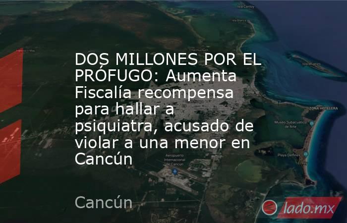 Esta noticia se da a solo […]The post DOS MILLONES POR EL PRÓFUGO: Aumenta Fiscalía recompensa para hallar a psiquiatra, acusado de violar a una menor en Cancún appeared first on Noticaribe.