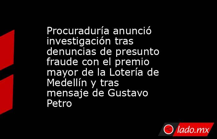 “Ante denuncias en medios por presunto fraude en @LoteriaMedellin, el procurador General, Gregorio Eljach, ordenó apertura inmediata de indagación para esclarecer posibles irregularidades en sorteo #4788, del que al parecer, resultó ganadora la esposa del subgerente Rubén Callejas”, comunicó el Ministerio Público en su perfil de X.