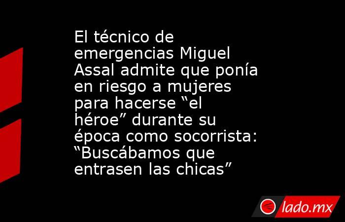 El que cuenta el chascarrillo con una sonrisa en la cara es Miguel Assal, un agente de emergencias del SAMU de San Pedro del Pinatar (Murcia) que acumula miles de seguidores en sus redes sociales desde donde explica técnicas de auxilio y salvamento ante situaciones de emergencia. Y el que le ríe la gracia es Jordi Wild, el youtuber que se ha convertido en un icono de masas en nuestro España y en Hispanoamérica. En su pódcast, The Wild Project, Assal, que en página web de su libro se define como “socorrista profesional”, admite que ponía en riesgo la vida de las mujeres “guapas” para poder hacerse “el héroe” y ninguno de los dos parece ser consciente de lo que dice.