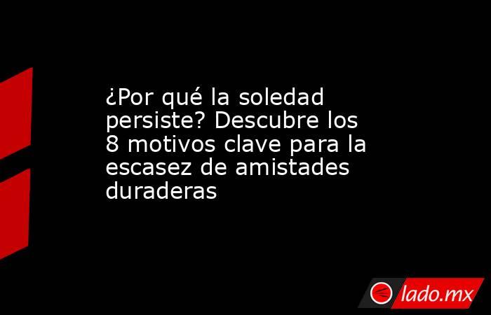 ¿Por qué la soledad persiste? Descubre los 8 motivos clave para la escasez de amistades duraderas Soycarmin
