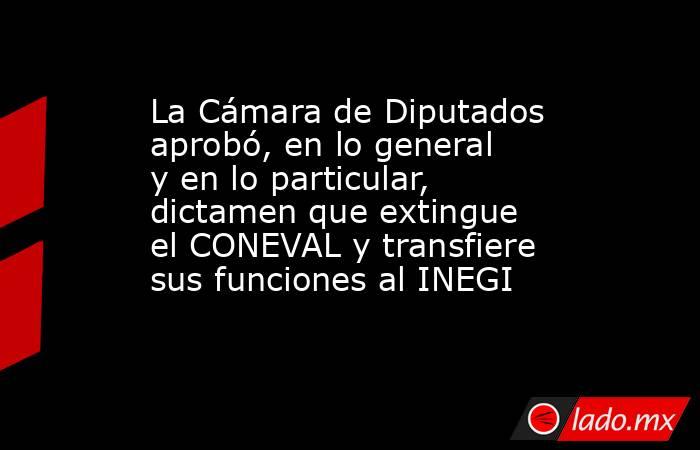México.- La Cámara de Diputados aprobó, en lo general y en lo particular, el dictamen que reforma diversas disposiciones de las leyes General de Desarrollo Social, Federal de Presupuesto y Responsabilidad Hacendaria y General de Contabilidad Gubernamental, para extinguir el Consejo Nacional de Evaluación de la Política de Desarrollo Social (CONEVAL) y transferir sus funciones al Instituto Nacional de Estadística y Geografía (INEGI).