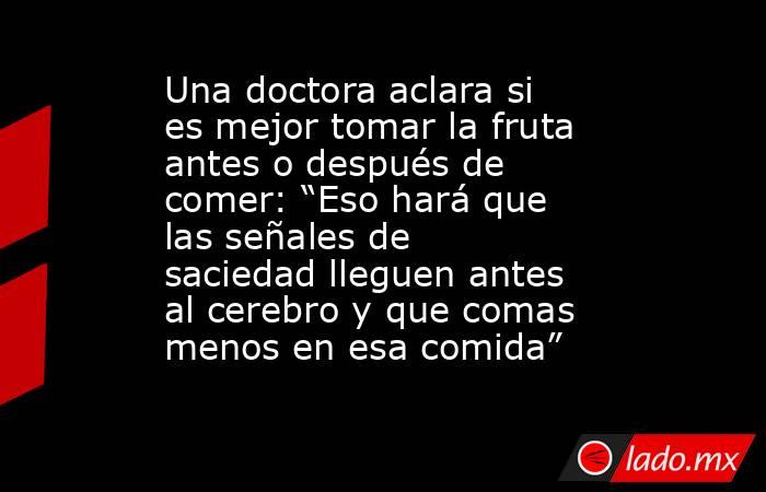 La doctora también ofrece una recomendación concreta para las personas que están en proceso de pérdida de grasa o quieren sentirse más saciados. Para ello recomienda tomar la fruta antes de las comidas principales. “Esa cantidad de fibra y agua va a ayudar a distender el estómago, lo que hará que las señales de saciedad lleguen antes al cerebro y que comas menos en esa comida”, explica.