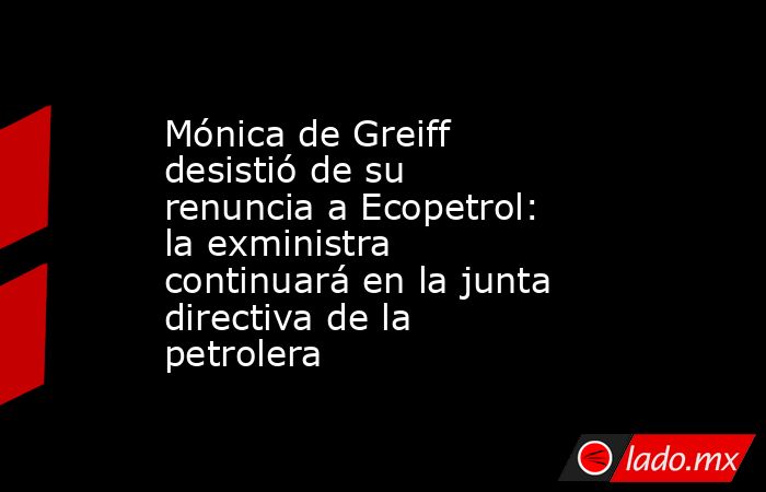La vicepresidenta de la junta directiva de Ecopetrol, Mónica de Greiff, decidió finalmente mantenerse en su cargo tras haber considerado renunciar.