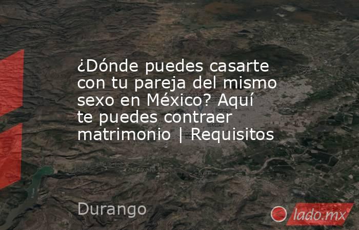 ¿Dónde te puedes casar en México con tu pareja del mismo sexo?A continuación, te enlistamos los estados donde actualmente se puede contraer matrimonio entre personas delmismo sexo:Ciudad de México, Chihuahua, Quintana Roo, Coahuila, Nayarit, Campeche, Colima, Michoacán, Morelos, Hidalgo, Baja California Sur, Oaxaca, San Luis Potosí, Puebla, Tlaxcala, Yucatán, Sinaloa, Querétaro, Sonora, Baja California, Zacatecas, Jalisco, Durango, Veracruz, Estado de México, Tabasco, Guerrero, Tamaulipas, Nuevo León y Chiapas.