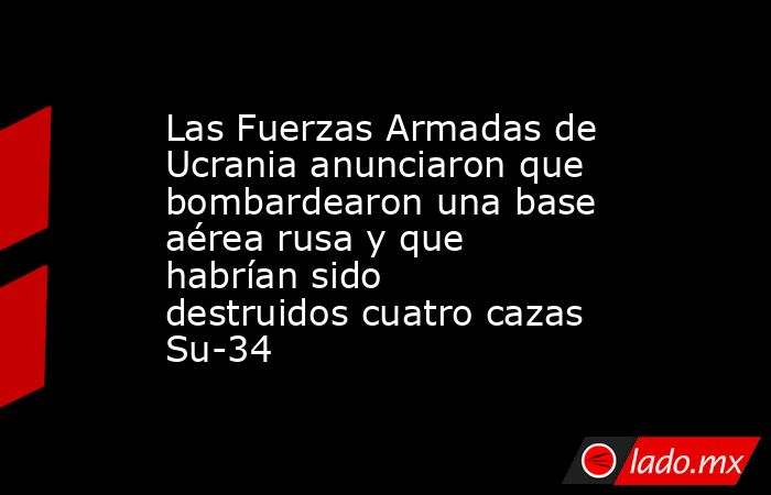 La acción, efectuada el viernes por la noche, tuvo como objetivo la base de Marinovka y se habría saldado con la destrucción de cuatro cazas Su-34 y una nave empleada para la reparación de aviones, según un comunicado de las Fuerzas Armadas ucranianas.