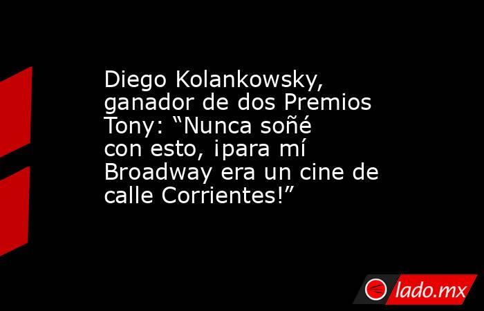 Y antes de irse completará la anécdota del pisotón: “Yo estaba eufórico, claro, y pendiente de la foto de familia que se hace con todo el elenco. Bajé rápido unos escalones, quedé pegado a la primera fila, y de pronto siento que piso a alguien. Me fijo... ¡y era George Clooney!" Así que Diego Kolankowsky no solo sabe cuánto pesa un Tony, también sabe lo que muy pocos: la cara que pone George Clooney cuando le pisan sus zapatos de charol. “Le pido disculpas y con la mejor onda me dice: ‘All good. ¡Congrats!’”, cuenta. Algo así como “Todo bien. ¡Felicitaciones!”