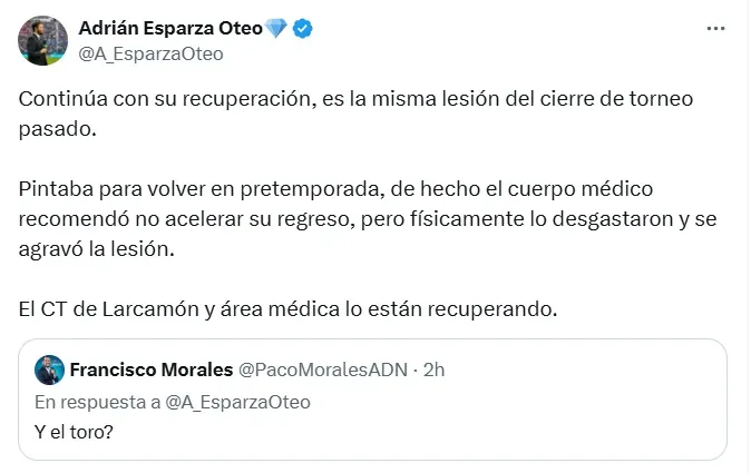 Según Adrián Esparza, el cuerpo técnico anterior habría acelerado su recuperación tras la lesión sufrida ante Tigres, lo que terminó por agravar el problema en su rodilla.