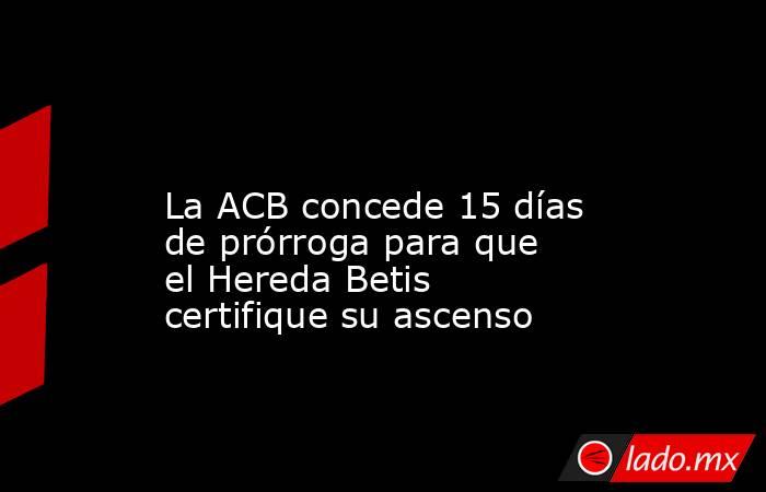 La ACB ha concedido al Hereda Betis, recién ascendido a la máxima categoría del baloncesto español, los 15 días de prórroga solicitados para cumplimentar antes del 30 de junio la documentación requerida para poder inscribir al equipo la próxima temporada, informaron a EFE fuentes cercanas al club sevillano.