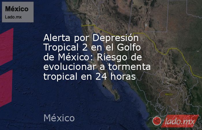 - La Comisión Nacional del Agua (Conagua) emitió una alerta por la depresión tropical Dos, ubicada en aguas del Golfo de México, debido a su potencial de intensificarse a tormenta tropical en el transcurso de las próximas 24 horas.
