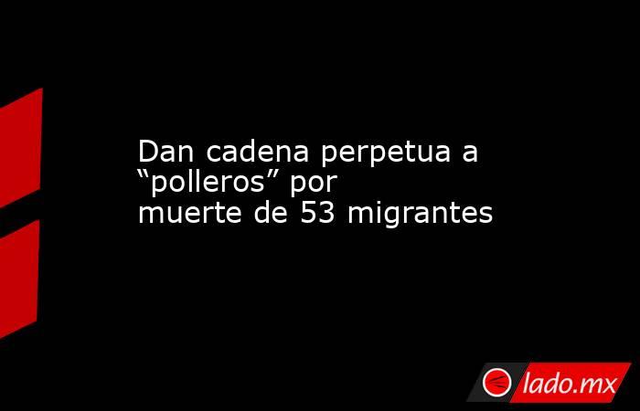 Dos hombres declarados culpables de estar implicados en la muerte de 53 migrantes de México, Guatemala, Honduras y El Salvador, que viajaban hacinados en el remolque de un camión, pasarán el resto de sus vidas en una cárcel de Estados Unidos, informó el Departamento de Justicia estadunidense.