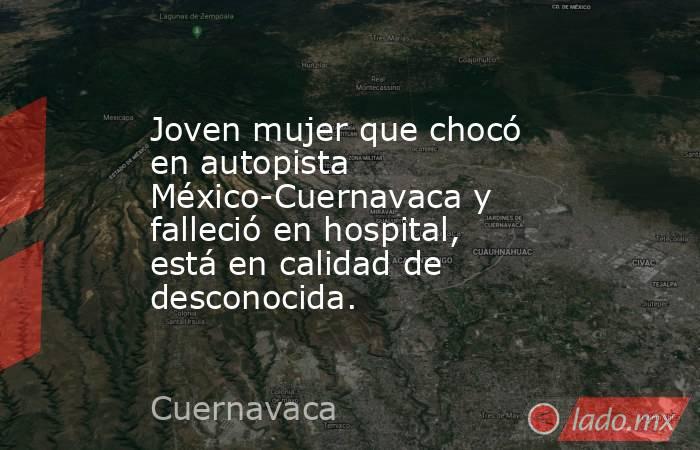 – La joven que conducía un auto Chevrolet Aveo color blanco y quien chocó en la autopista México-Cuernavaca el lunes 23 de junio, falleció la tarde del miércoles.