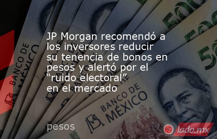 El banco JP Morgan recomendó recortar exposición en deuda en pesos de Argentina, pese a definir su postura general como “constructiva para Argentina en el mediano plazo”. El banco explicó que “preferimos reducir el riesgo por ahora”, en un contexto marcado por la proximidad de las elecciones y el fin de la estacionalidad favorable.