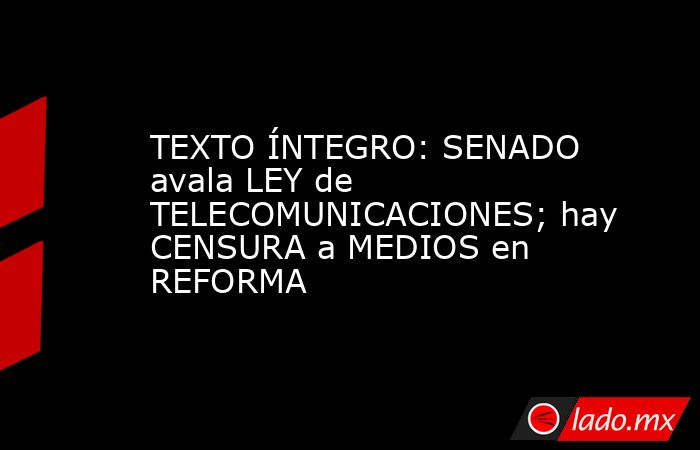 TEXTO ÍNTEGRO: SENADO avala LEY de TELECOMUNICACIONES; hay CENSURA a MEDIOS en REFORMA Punto Por Punto