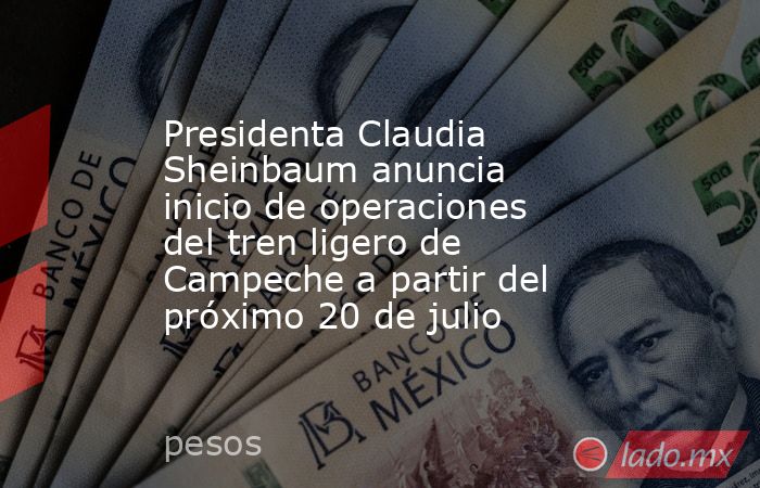 Luego de la conclusión de la obra civil del Tren Ligero de Campeche, la Presidenta de México, Claudia Sheinbaum Pardo, anunció que el nuevo transporte público iniciará operaciones el próximo 20 de julio de manera gratuita y a partir del 2 de agosto el servicio se otorgará a través de una tarifa que tendrá 50 por ciento de descuento para estudiantes, adultos mayores y personas con discapacidad.