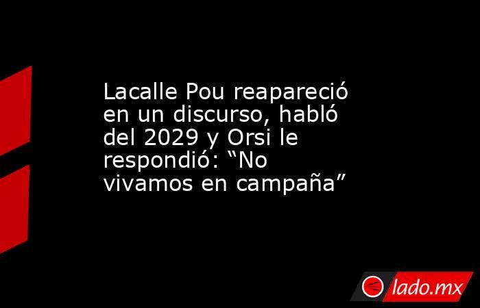 Orsi contestó a ese comentario que “no soporta” vivir en clima de campaña electoral. “Pasaron las elecciones. La ciudadanía decidió y hoy hay un partido político en el gobierno, y otro que hace oposición. Esa lógica se mantiene y lo que sí tenemos que cuidar es que no vivamos en permanente campaña. Creo que el país no soporta que estemos siempre en ese clima”, dijo Orsi, en entrevista con Canal 5.