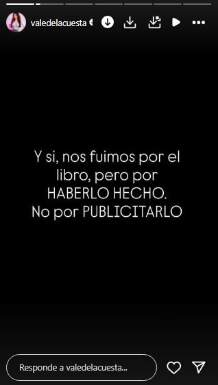 En un mensaje contundente publicado en sus historias de Instagram, Valentina explicó lo que realmente sucedió detrás de su salida y desmintió los rumores que sugieren que su huida fue una estrategia para promocionar el libro.