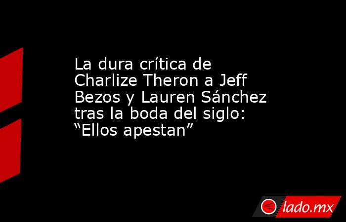Charlize Theron lanza dura crítica Jeff Bezos y Lauren Sánchez tras realizar su lujosa boda del siglo: “Ellos apestan”.