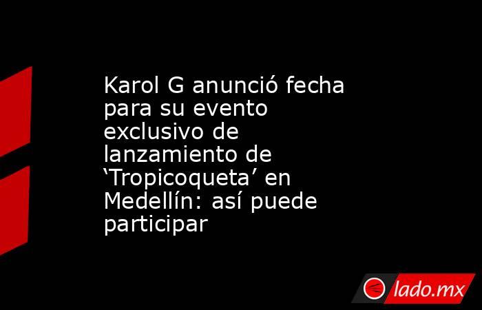 La experiencia, titulada “Siente la vibra Tropicoqueta con Karol G”, se desarrollará en una azotea en Medellín, cuya ubicación permanecerá en secreto hasta el día del evento y forma parte de una alianza de la “Bichota” con Airbnb.