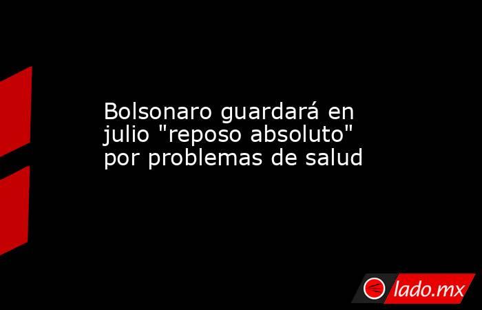 El expresidente brasileño Jair Bolsonaro ha anunciado que tras una consulta médica de urgencia los médicos le han recomendado guardar "reposo absoluto" durante todo el mes de julio, lo que le obligará cancelar los actos que ya tenía convocados en agenda para las próximas semanas.