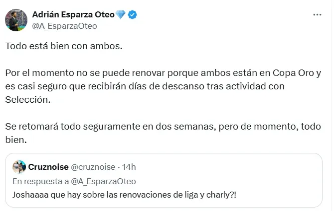 Esto encaja con lo que expresó por Víctor Velázquez en las últimas semanas, quien aseguró que ya lograron acuerdos para extender los contratos de Lira y Charly, que expiran en diciembre de 2025.