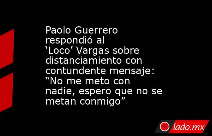 “Sí, vi y le escribí a Jefferson Farfán e inclusive le dije " tú sabes muy bien por qué hoy por hoy no tuve más contacto con el ‘Loco’’. Tuvimos una gran amistad con el ‘Loco’; en algún momento dejamos de hablar por motivos de la vida, pero yo encantado. Yo soy bien claro, no me meto con nadie, espero que no se metan conmigo. Trato de vivir más perfil bajo que pueda y después no incomodar a nadie, molestar a nadie, respetar a todo el mundo y espero también el respeto hacia mí y hacia mi familia. Es lo único que le pido a la vida”, apuntó Guerrero en entrevista con el programa ‘Fútbol como Cancha’.