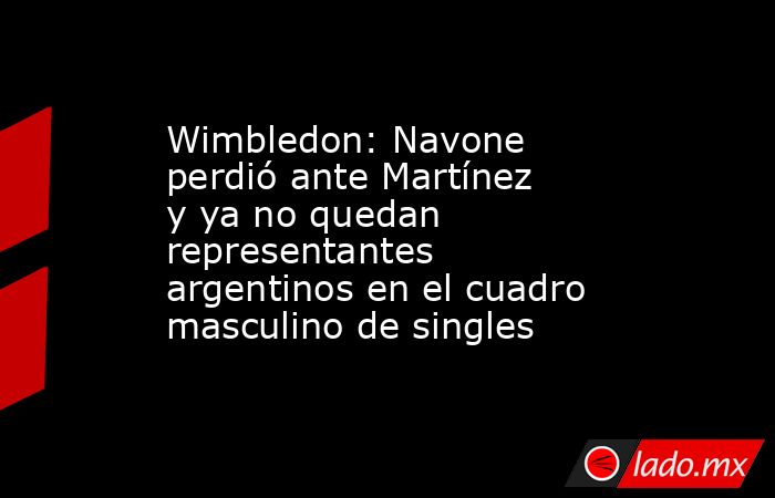 El tenista argentino Mariano Navone (91 del ranking ATP) fue eliminado en la segunda ronda de Wimbledon tras caer ante el español Pedro Martínez (52) en un partido sumamente disputado que se definió en tres sets con parciales de 7-5, 7-5 y 7-6(8). El encuentro, que se extendió por más de tres horas en la Cancha 17 del All England Club, fue un duelo de gran paridad y solidez desde el fondo de la pista, donde la mayor efectividad del ibérico en los momentos cruciales terminó inclinando la balanza a su favor. Con la derrota de La Nave, el cuadro principal individual masculino del tercer Grand Slam del año se quedó sin representantes albicelestes.
