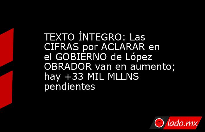 TEXTO ÍNTEGRO: Las CIFRAS por ACLARAR en el GOBIERNO de López OBRADOR van en aumento; hay +33 MIL MLLNS pendientes Punto Por Punto
