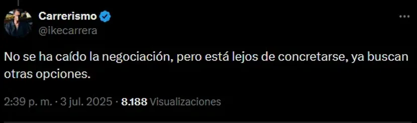 03 de Julio, 2025 16:30El uruguayo está muy activo en el presente mercado de transferencias.