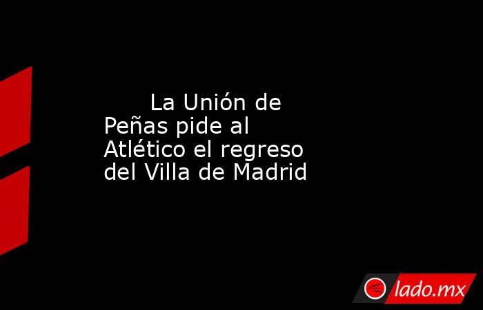 La Unión Internacional de Peñas del Atlético de Madrid ha solicitado al club rojiblanco el regreso del Trofeo Villa de Madrid, popular torneo que no se disputa desde el año 2003 y que era el último amistoso de preparación del equipo antes del inicio de la competición.