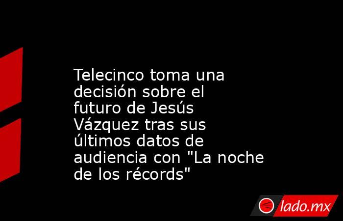 Jesús Vázquez volvía a ponerse al frente de un nuevo programa diario en la noche de Telecinco. El presentador de Mediaset asumió el reto de "La noche de los récords". Pasión, riesgo, emoción y diversión son los principales ingredientes de este programa, producido por la cadena en colaboración con Cuarzo Producciones (Banijay Iberia), en el que más de un centenar de aspirantes trataron de entrar en el mítico Libro Guinness World Records, un fenómeno mundial que celebra logros extraordinarios en diversas categorías.