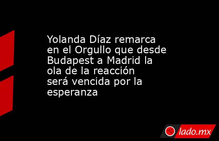 La vicepresidenta segunda del Gobierno y ministra de Trabajo, Yolanda Díaz, ha remarcado este sábado, en el marco de las celebraciones del Orgullo, que desde Budapest hasta Madrid la ola de la reacción va a ser vencida por la de la esperanza.