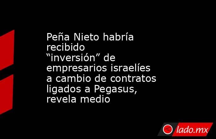 El expresidente Enrique Peña Nieto habría ofrecido “lucrativos contratos” a dos empresarios israelíes que “invirtieron” 25 millones de dólares con la intención de beneficiarse de la comercialización del software espía Pegasus, según una publicación del diario israelí The Marker citado por La Jornada.