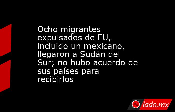 Ocho migrantes expulsados en mayo de Estados Unidos, entre ellos un mexicano y dos cubanos, llegaron este sábado a Sudán del Sur, anunciaron el ministerio estadounidense de Seguridad interior y un responsable del ministerio de Relaciones exteriores del país africano.