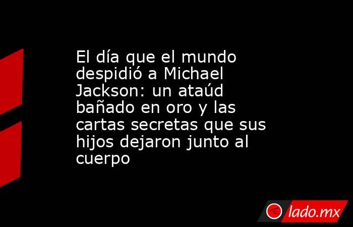 El féretro —bronce macizo, bañado en oro de 14 quilates, forrado en terciopelo azul— descansaba sobre una base de concreto, sellado para siempre. Costó 25.000 dólares. Dentro, el Rey del Pop vestía uno de sus trajes más brillantes, rostro maquillado, guantes blancos. Había algo más: las notas manuscritas de sus hijos, Prince, Paris y Blanket. Tres cartas en miniatura que sólo ellos conocían, metidas entre las telas, junto a su pecho.