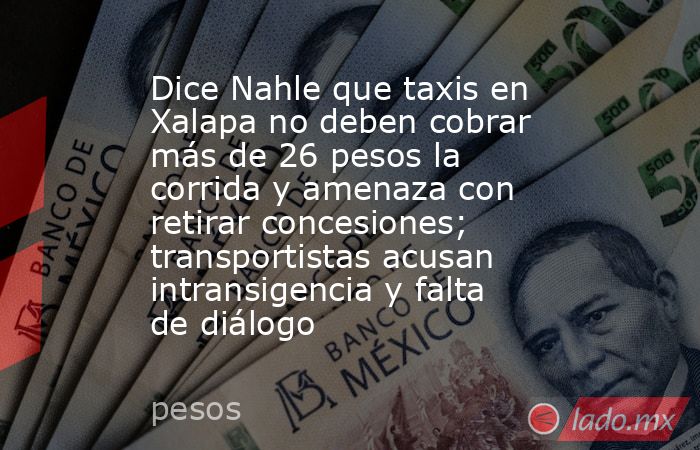 La gobernadora de Veracruz, Rocío Nahle García, afirmó que no se ha autorizado ningún aumento a las tarifas de taxi en Xalapa, que deben mantenerse entre 14 y 15 pesos la mínima, y entre 24 y 26 pesos la máxima, dependiendo del recorrido.