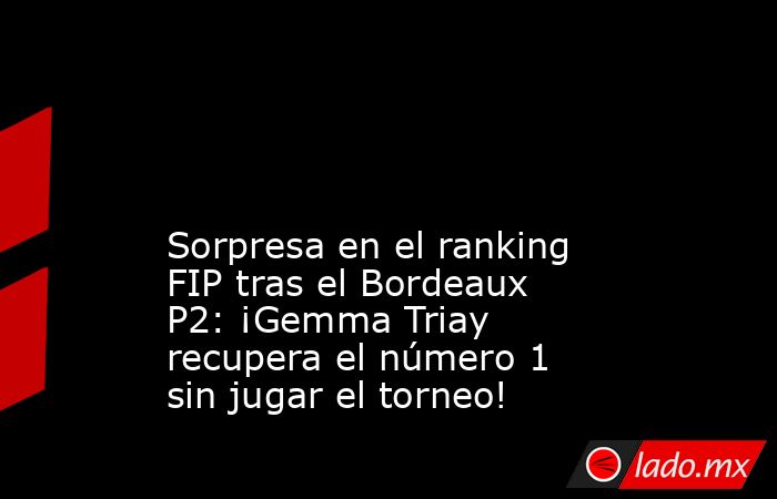 Situación totalmente insólita la que ha dejado el Bordeaux Premier Padel P2 en el ranking FIP. Sin poder disputar el torneo por la lesión en el gemelo de Delfi Brea, Gemma Triay recuperaba de forma totalmente inesperada el número 1.