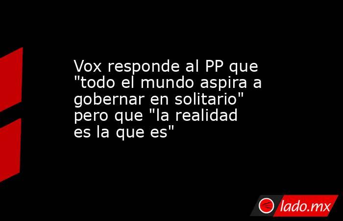 "El Partido Popular dice que ellos aspiran a gobernar en solitario. Bueno, pues como cualquier partido que se presenta a las elecciones, todo el mundo aspira a gobernar en solitario y no tener que estar en una coalición y dependiendo de otros. Ese sería el escenario ideal, pero la realidad es la que es", ha afirmado la dirigente de Vox.