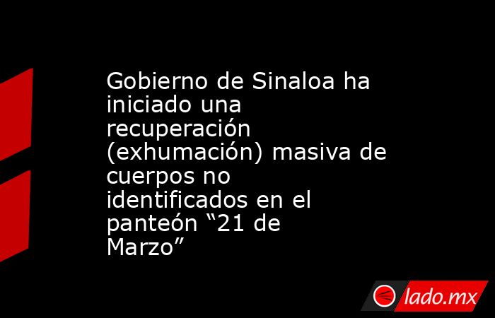 El cargo Gobierno de Sinaloa ha iniciado una recuperación (exhumación) masiva de cuerpos no identificados en el panteón “21 de Marzo” apareció primero en El Arsenal.