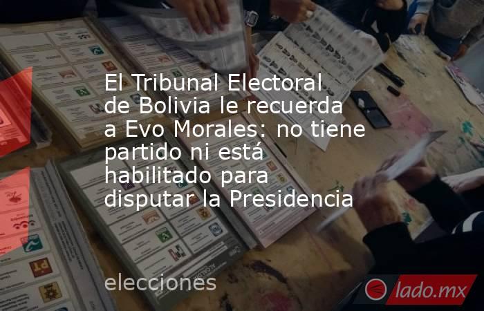 De igual forma, el vocal electoral señala que el Partido de Acción Nacional Bolivia (Pan Bol), con el que el ex presidente hizo una alianza reciente, fue cancelado por dos resoluciones judiciales y que el frente Evo Pueblo, creado por el líder cocalero y sus partidarios en marzo pasado, aún no cuenta con personería jurídica para disputar las elecciones generales de agosto.