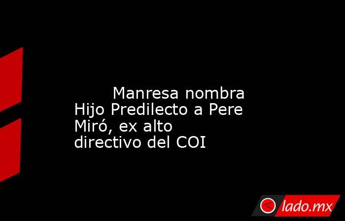 El Ayuntamiento de Manresa nombró este miércoles Hijo Predilecto de la ciudad a Pere Miró Sellarés, ex alto directivo del Comité Olímpico Internacional, en un emotivo acto que abarrotó el Saló de Sessions del Ajuntament, y al que asistieron, entre otros, el expresidente del COI Thomas Bach, el presidente del COE, Alejandro Blanco, y Juan Antonio Samaranch Junior, así como David Escudé, regidor de deportes del Ajuntament de Barcelona.