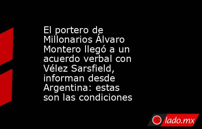“Vélez llegó a un acuerdo verbal con Millonarios por Álvaro Montero. El arquero se suma a préstamo por 18 meses con cargo y obligación de compra según objetivos”, detalló el comunicador.