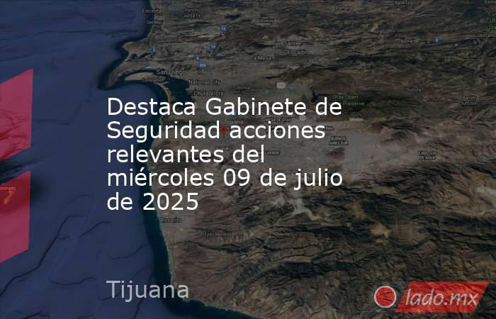 El Gabinete de Seguridad informa los eventos relevantes del miércoles 09 de julio de 2025, como parte de la Estrategia Nacional de Seguridad, que contempla cuatro ejes de acción: Atención a las causas; Consolidación de la Guardia Nacional; Fortalecimiento de la inteligencia e investigación, y Coordinación con las entidades federativas.